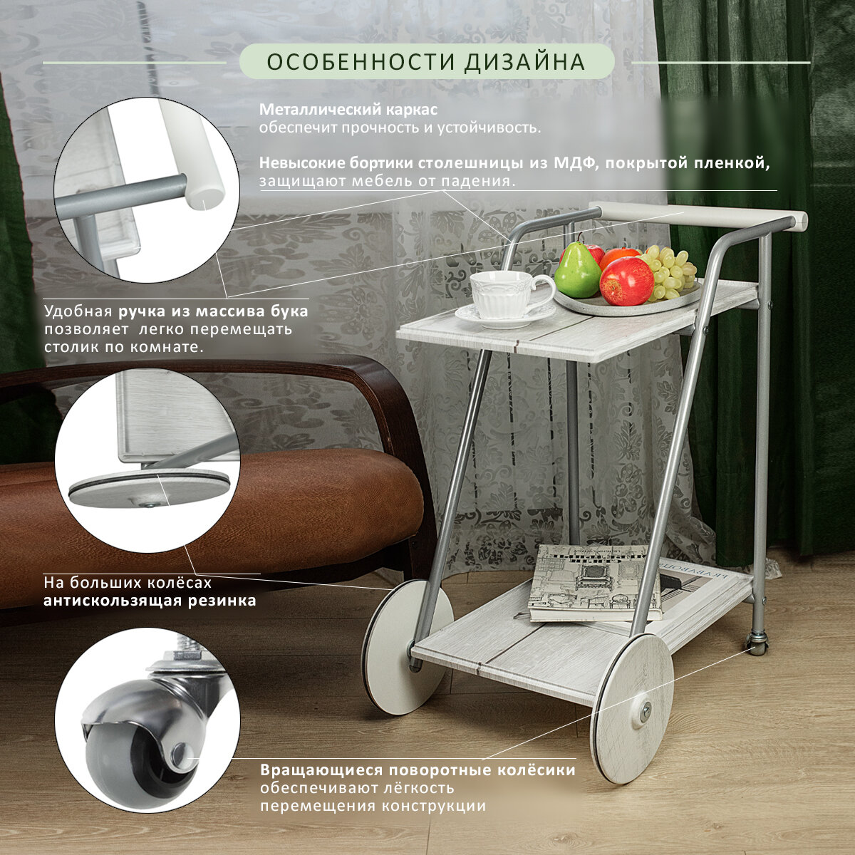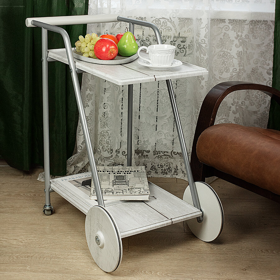 Стол сервировочный Мебелик Оди журнальный, на колесиках, с полкой металлик/белый/дуб дымчатый: сравнение цен, характеристики, фото, актуальное наличие и цены.