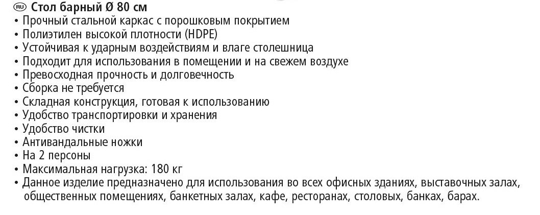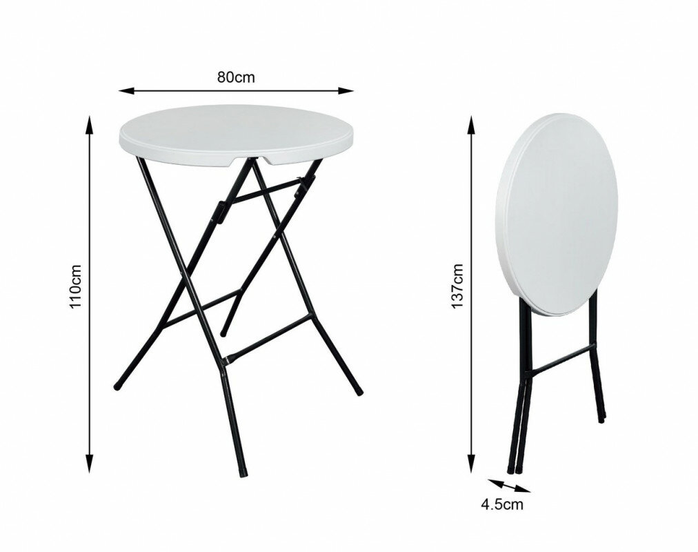 Стол складной барный высота 110 см, диаметр 80 см, сталь/пластик: сравнение цен, характеристики, фото, актуальное наличие и цены.