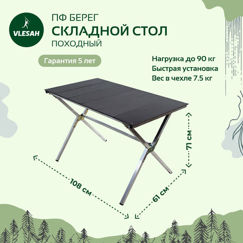 Большой плюс походного стола в том, что он легко складывается и транспортируется, имеет небольшой вес. При габаритах 108 х 61 х 71 см его вес составляет 7,5 кг.