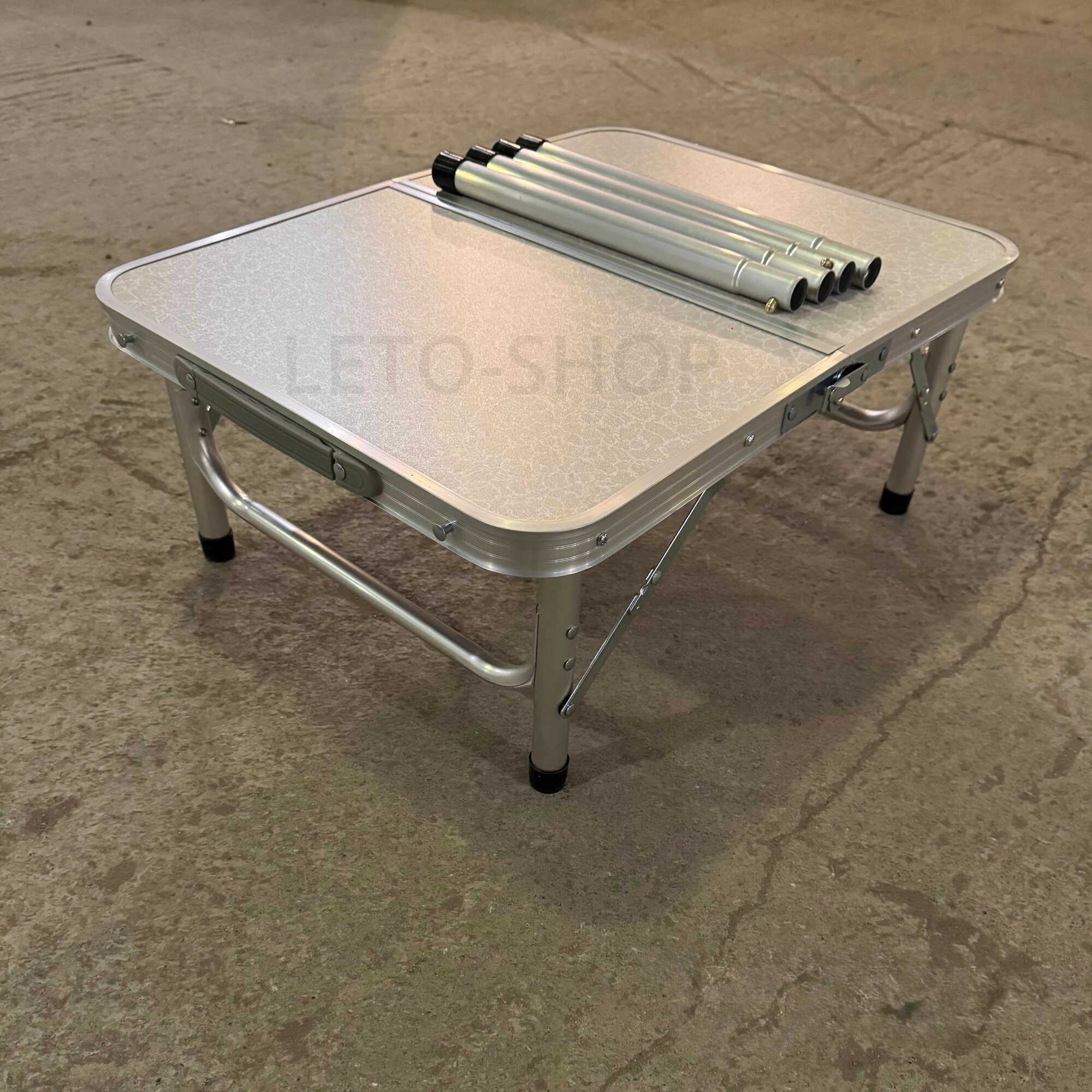 Стол очень удобен в транспортировке: складывается в виде чемоданчика с пластиковой ручкой. Надежная конструкция на основе алюминиевой трубы обеспечивает столу прочность. Характеристики: Размер стола: 60х45x25см/55смКаркас стола: алюминиевая труба (15 мм)Столешница: ламинированная дспвес: 2,4 кг