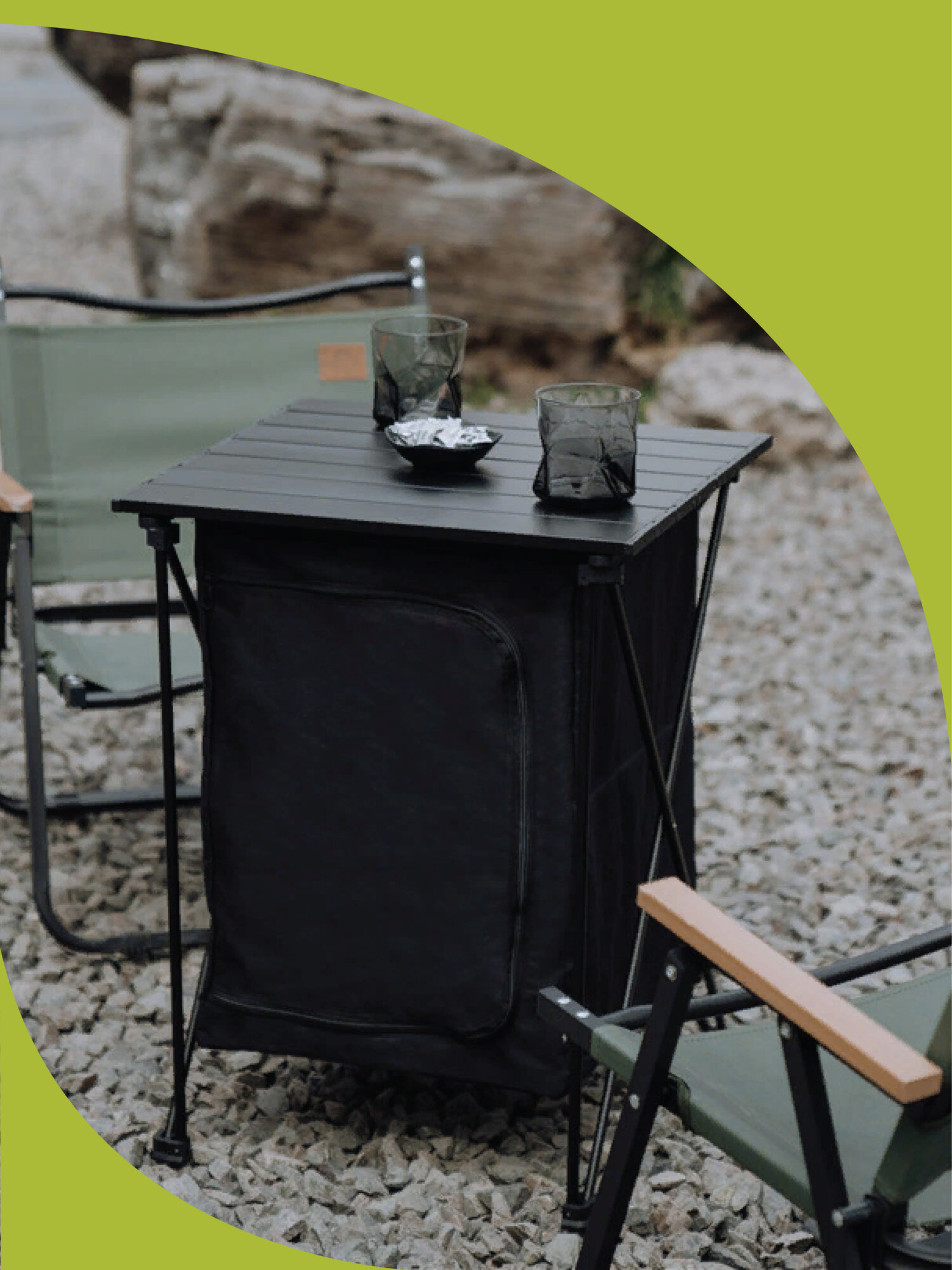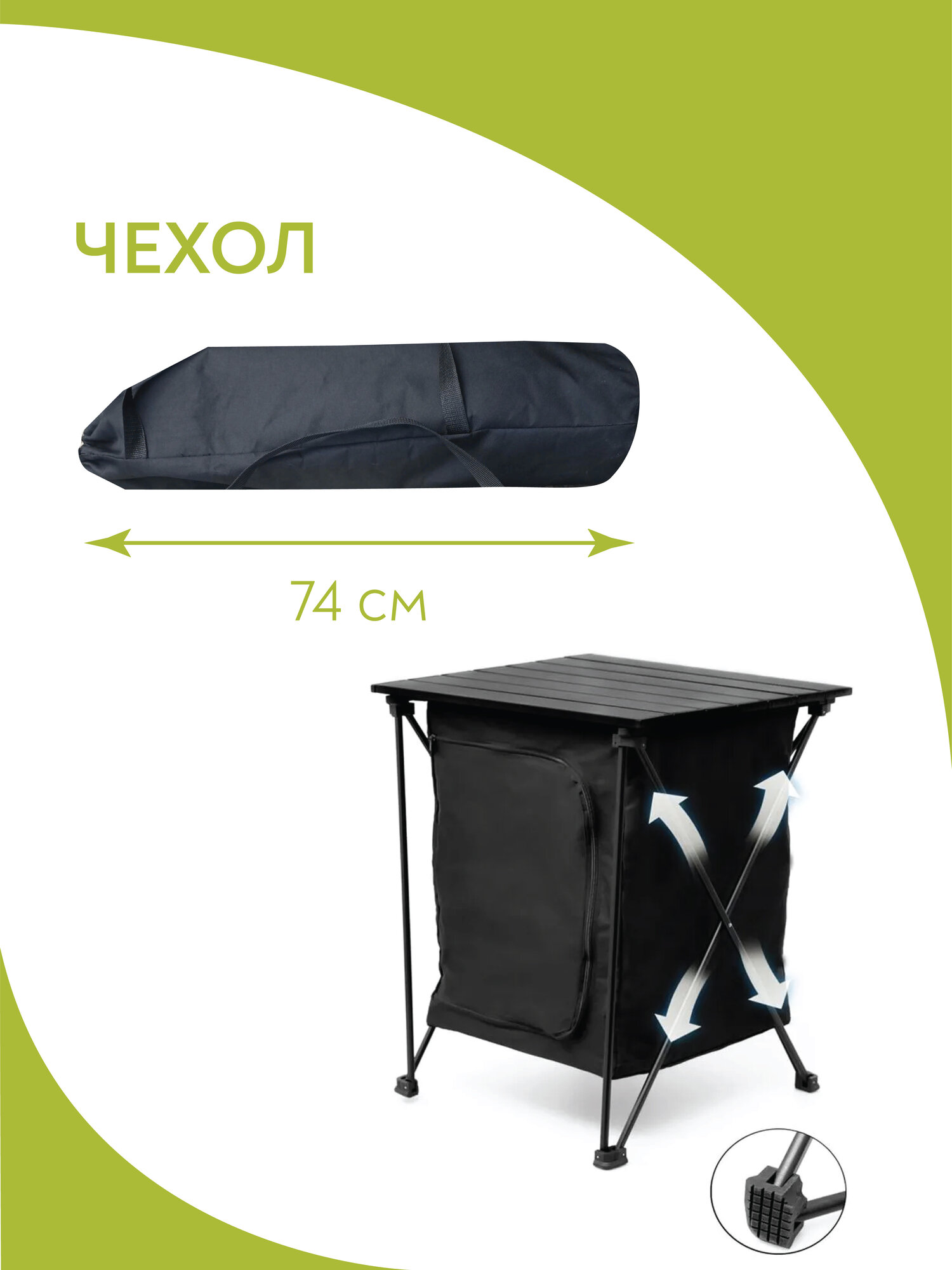 Тумбочка идеально подойдет для приготовления обедов на пикниках и на свежем воздухе. Удобные ножки обеспечивают стабильность на любой поверхности, а компактный размер в сложенном виде поможет сэкономить место при хранении.