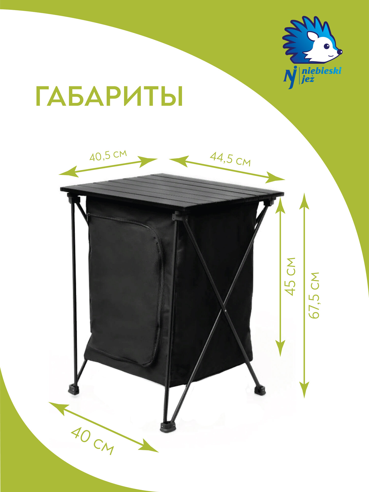 Идеальное решение для вашего активного отдыха - туристический складной стол / тумбочка для пикника! Стол имеет органайзер с двумя полками, можно использовать как тумбочку. СТубма туристическая имеет компактные размеры в сложенном виде, что делает ее удобной для транспортировки в поход или на рыбалке. Специальный механизм трансформации позволяет легко развернуть стол-тумбу и получить удобное рабочее место размером 40,5х44,5 см.