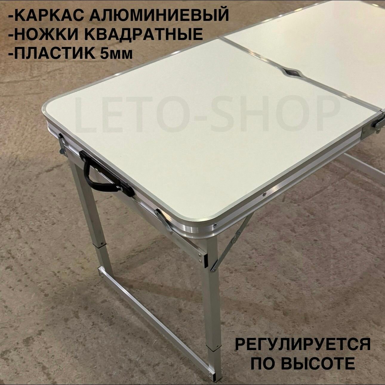 Особенности: Регулируемая высота ножек стола 50/60/70. Столешница из огнеупорного пластика. Набор компактно складывается в плоский чемоданчик. Материал: Столешница: мдф, пластик. Рама: 22/25 мм алюминий с матовым покрытием. Размер стола в разложенном виде: 120 х 60 х 50/60/70 см. Размер стула в разложенном виде: 41 х 29 х 34 см. Размер набора в сложенном виде: 60 х 10 х 60 см. Нагрузка на стол: 50 кг.