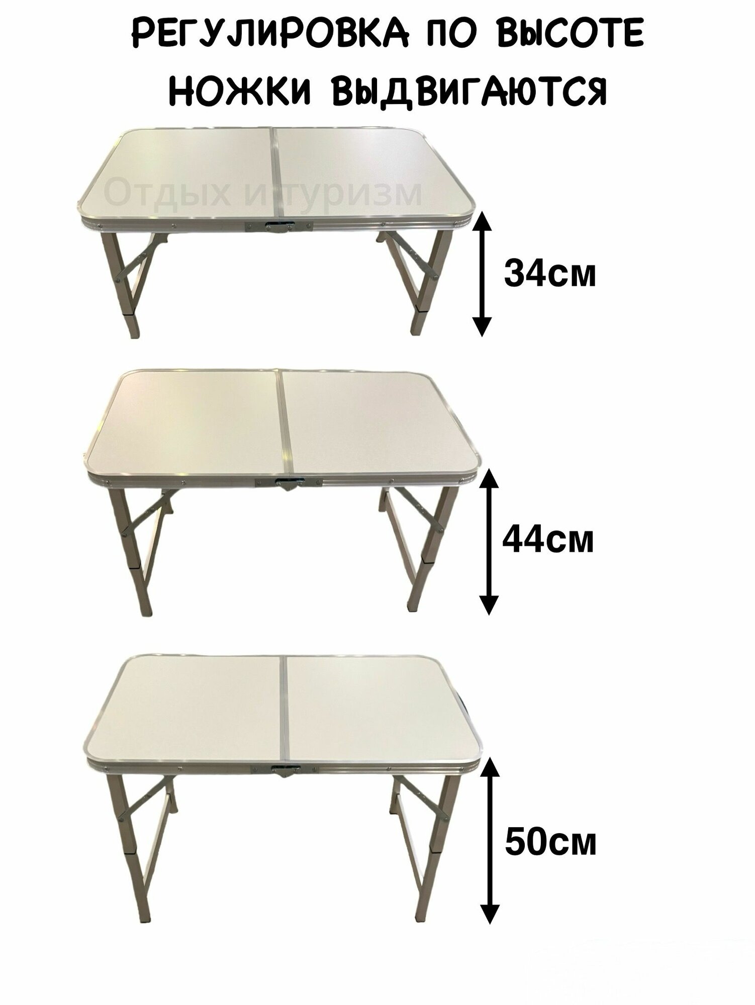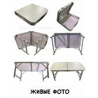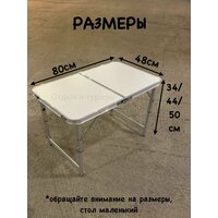 Высота туристического стола регулируется выдвижными ножками: 34см/44см/50см. Матовая поверхность столешницы изготовлена из водостойкого пластика, защищающая поверхность от повреждений. Так же имеется рукоятка для удобной переноски. Стол складной туристический незаменимый предмет походной мебели, очень удобен в эксплуатации. Стол легко собирается и разбирается и не занимает много места, поэтому подходит для транспортировки и хранения дома. Размеры складного стола: длина - 80см, ширина - 48см, высота - 50см. Вес - 2,5кгРазмер в сложенном виде - 40*48*6,5см