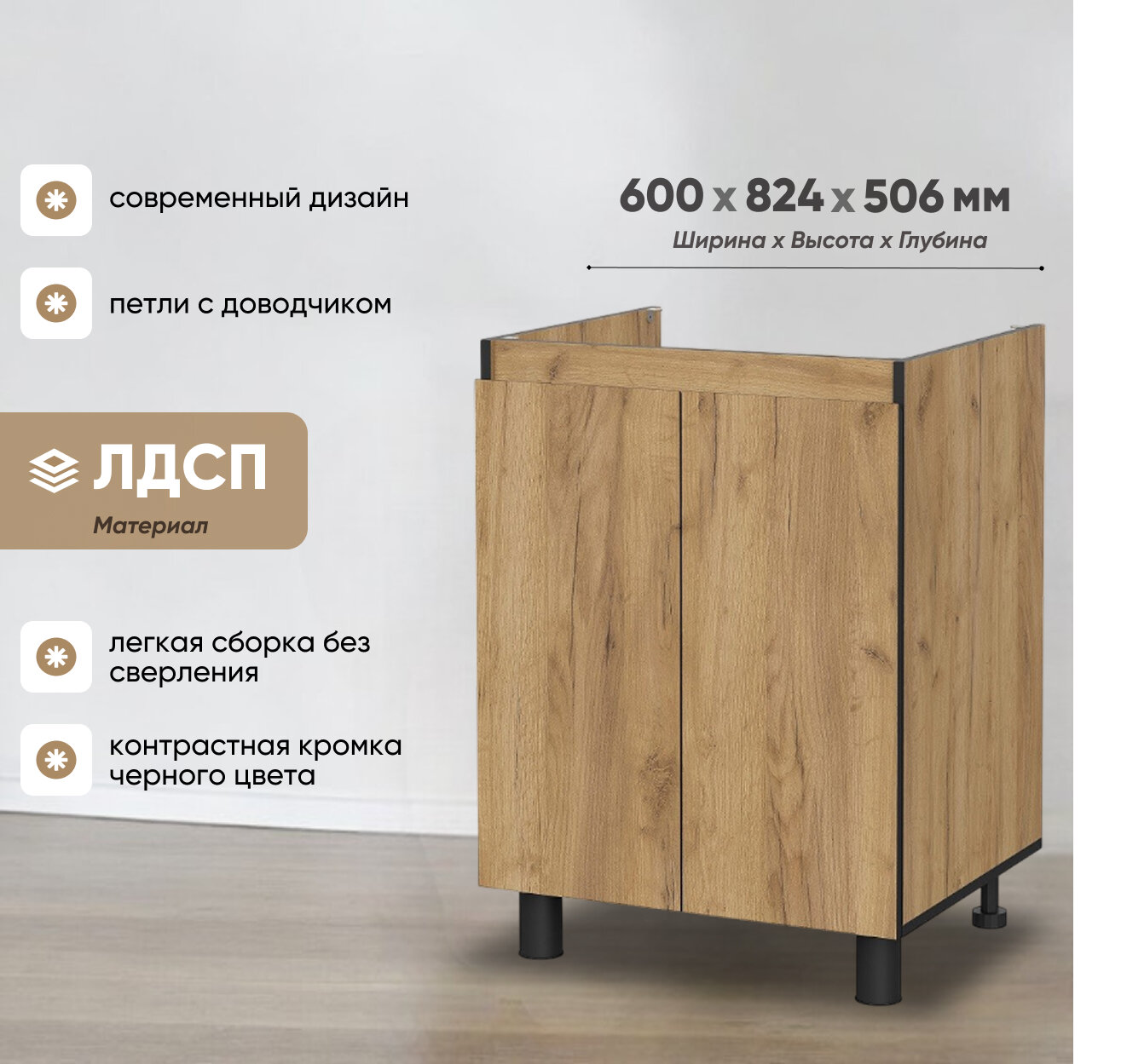 Стол Соната 600х824х506мм под мойку – стильное и лаконичное решение для современной кухни. Изготовлен из высококачественного ЛДСП, что обеспечивает долговечность и надежность изделия.