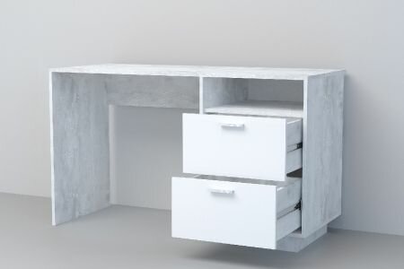 Стол СТ-3 ЭГО для дома Белый глянец и Бетон светлый, ширина 130 см, с ящиками, письменный стол, в кабинет, в спальню: сравнение цен, характеристики, фото, актуальное наличие и цены.