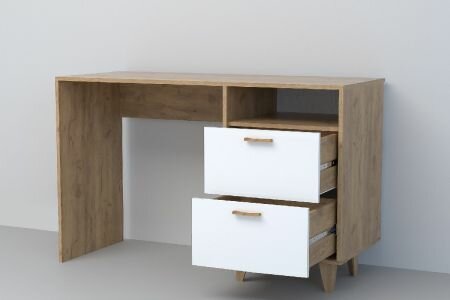 Стол СТ-3 ЭГО для дома Белый глянец и Дуб Крафт золотой, ширина 130 см, с ящиками, письменный стол, в кабинет, в спальню