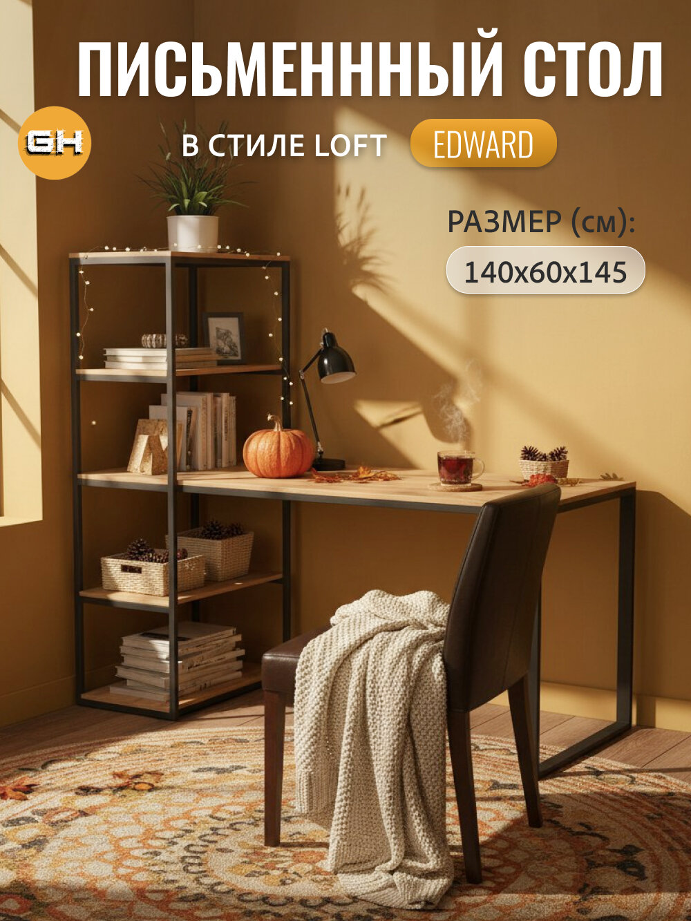 Стол стеллаж письменный с полками EDWARD, дуб вотан, компьютерный для школьника, офиса, рабочий, швейный гростат 140х60х75 см.: сравнение цен, характеристики, фото, актуальное наличие и цены.