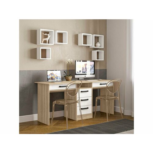 Этот стол предлагает эргономичное решение обустройства двух рабочих мест одновременно: стильно, удобно и надежно. Такой стол отлично подойдет как для детской комнаты с двумя детьми в качестве ученического места - для занятий и творчества, так и в качестве офисной мебели для работы с документами или ноутбуком.
