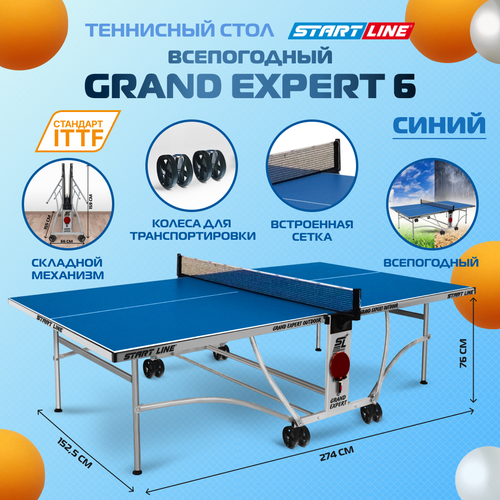 Купить Стол теннисный Start Line GRAND EXPERT 6 Всепогодный Синий, для улицы, с колесами, сеткой с доставкой по всей России.