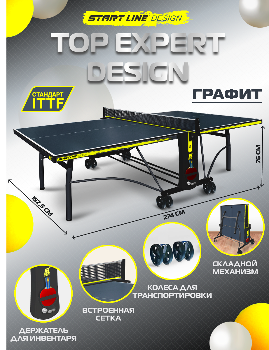 Стол теннисный Start Line Top Expert DESIGN, для помещений, с сеткой и колесами: сравнение цен, характеристики, фото, актуальное наличие и цены.