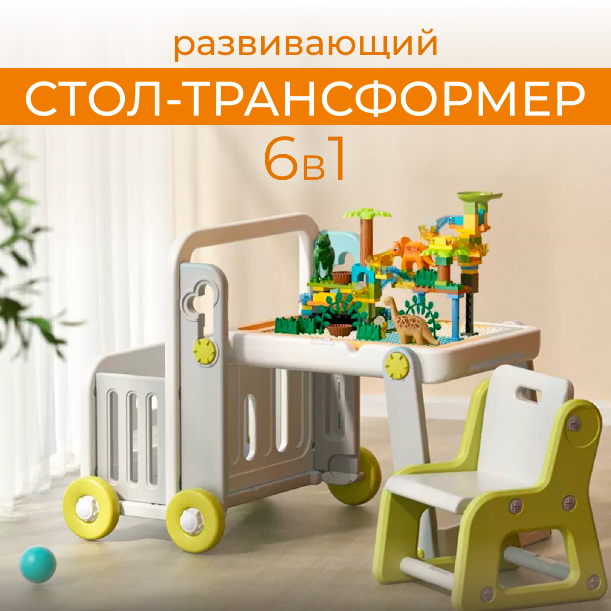 Стол-трансформер Mloong кабина автомобиля 6 в 1 со стульчиком, доской для рисования и конструктором «Динозавры»: сравнение цен, характеристики, фото, актуальное наличие и цены.