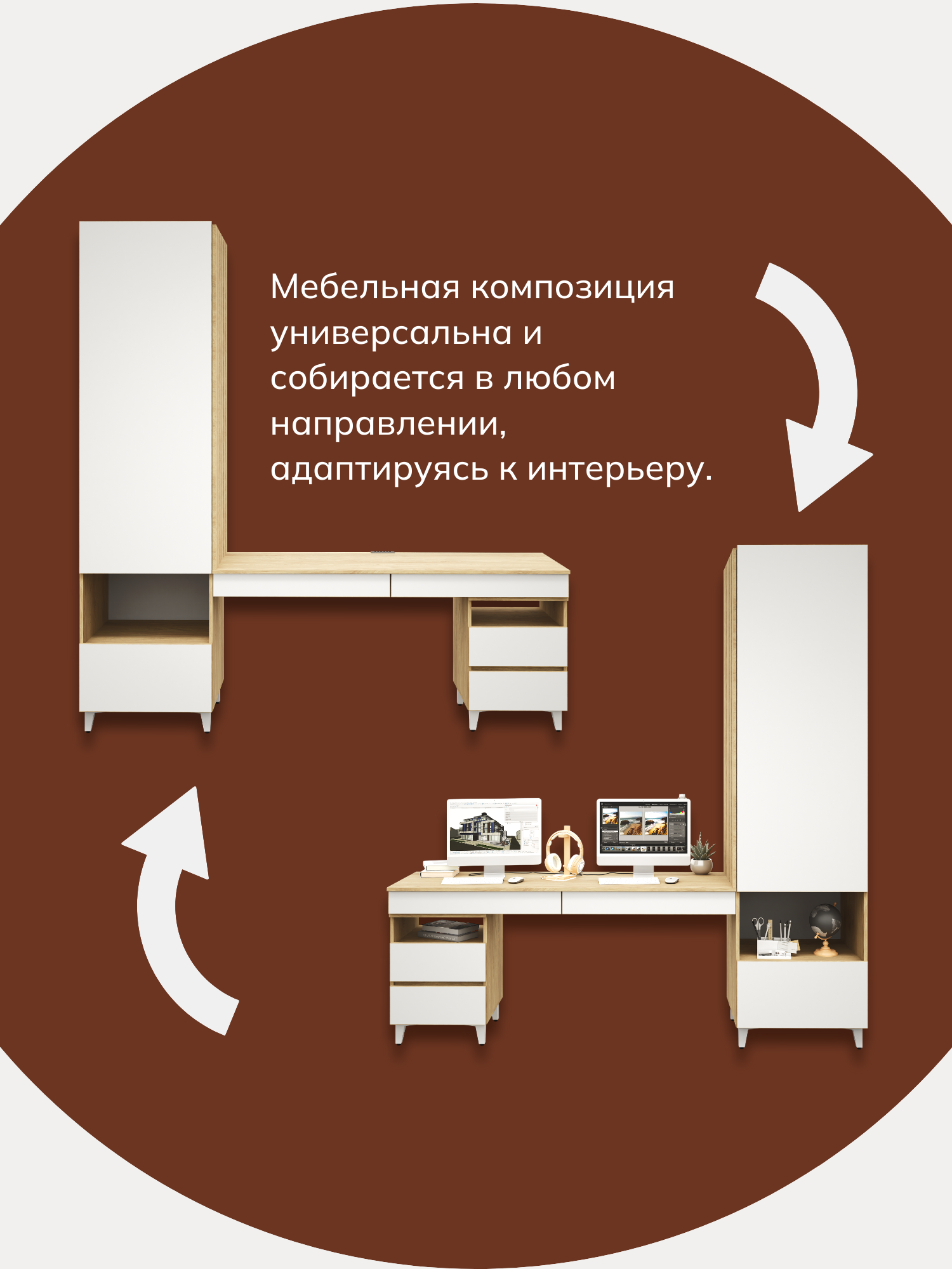 Купить Стол-трансформер модульный «Олива» композиция 3, гикори/белый, стол, шкаф, тумба с доставкой по всей России.