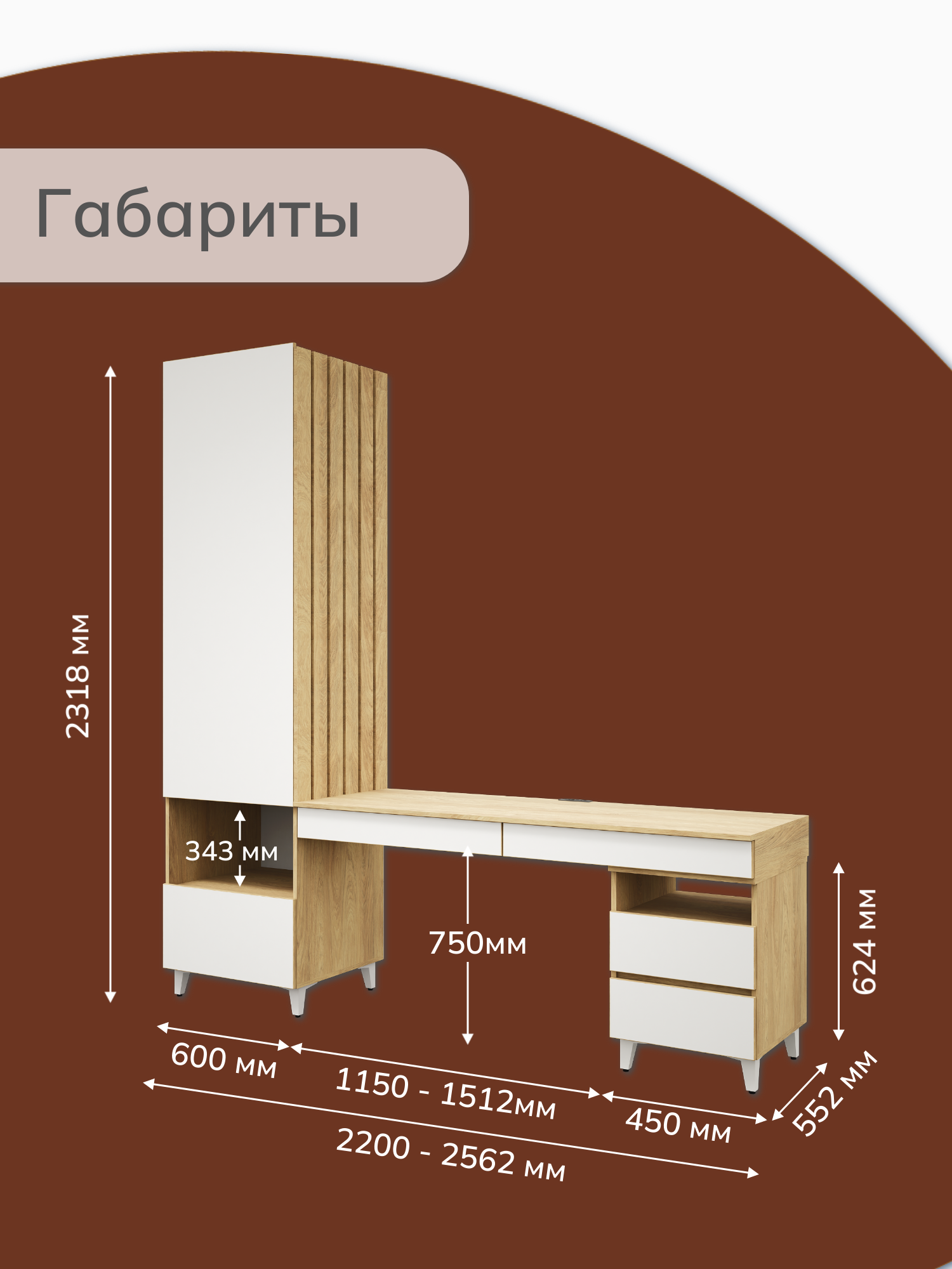 Стол-трансформер модульный «Олива» композиция 3, гикори/белый, стол, шкаф, тумба: сравнение цен, характеристики, фото, актуальное наличие и цены.