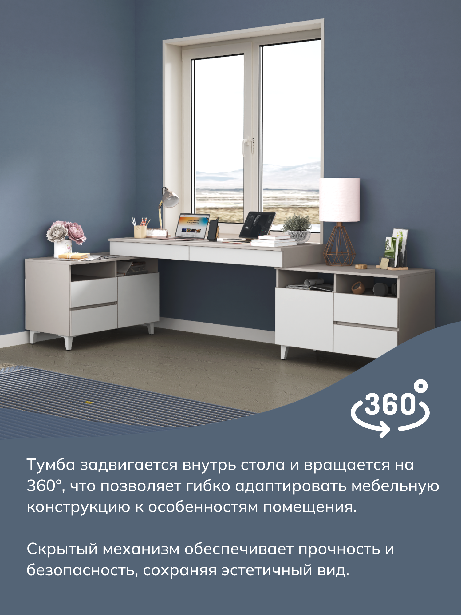 Стол-трансформер модульный «Олива» композиция 4, дымчатый серый/белый, стол и широкие тумбы: сравнение цен, характеристики, фото, актуальное наличие и цены.