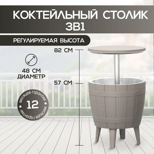 Пластиковый столик уличный круглый Nova Cool Bar - это изделие 3-в-1. С закрытой крышкой его можно использовать как журнальный или кофейный столик, а с поднятой - как коктейльный бар и охладитель напитков. Удобное и стильное решение для балкона, террасы и других зон отдыха на открытом воздухе.