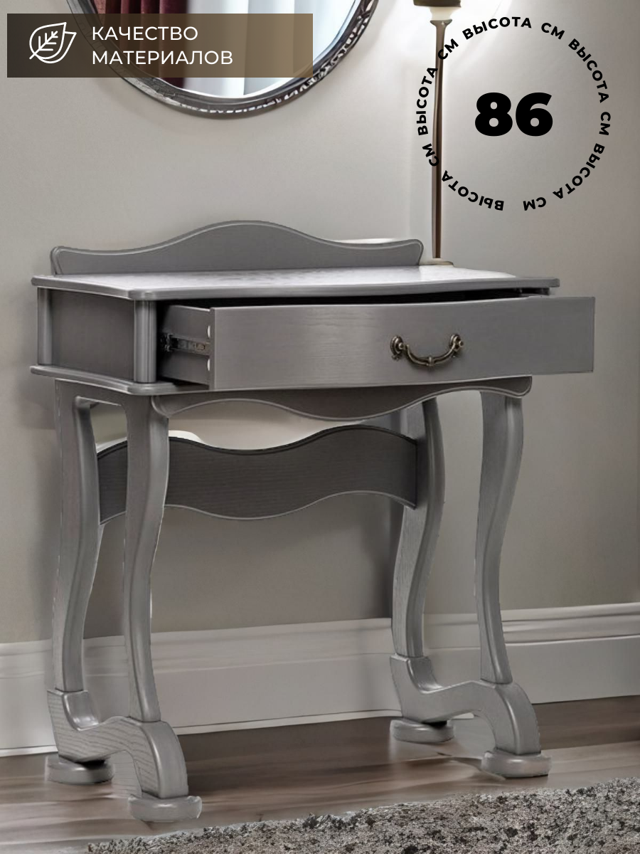Стол туалетный K-home Джульетта, в классическом стиле, с выдвижным ящиком, цвет серый ясень: сравнение цен, характеристики, фото, актуальное наличие и цены.