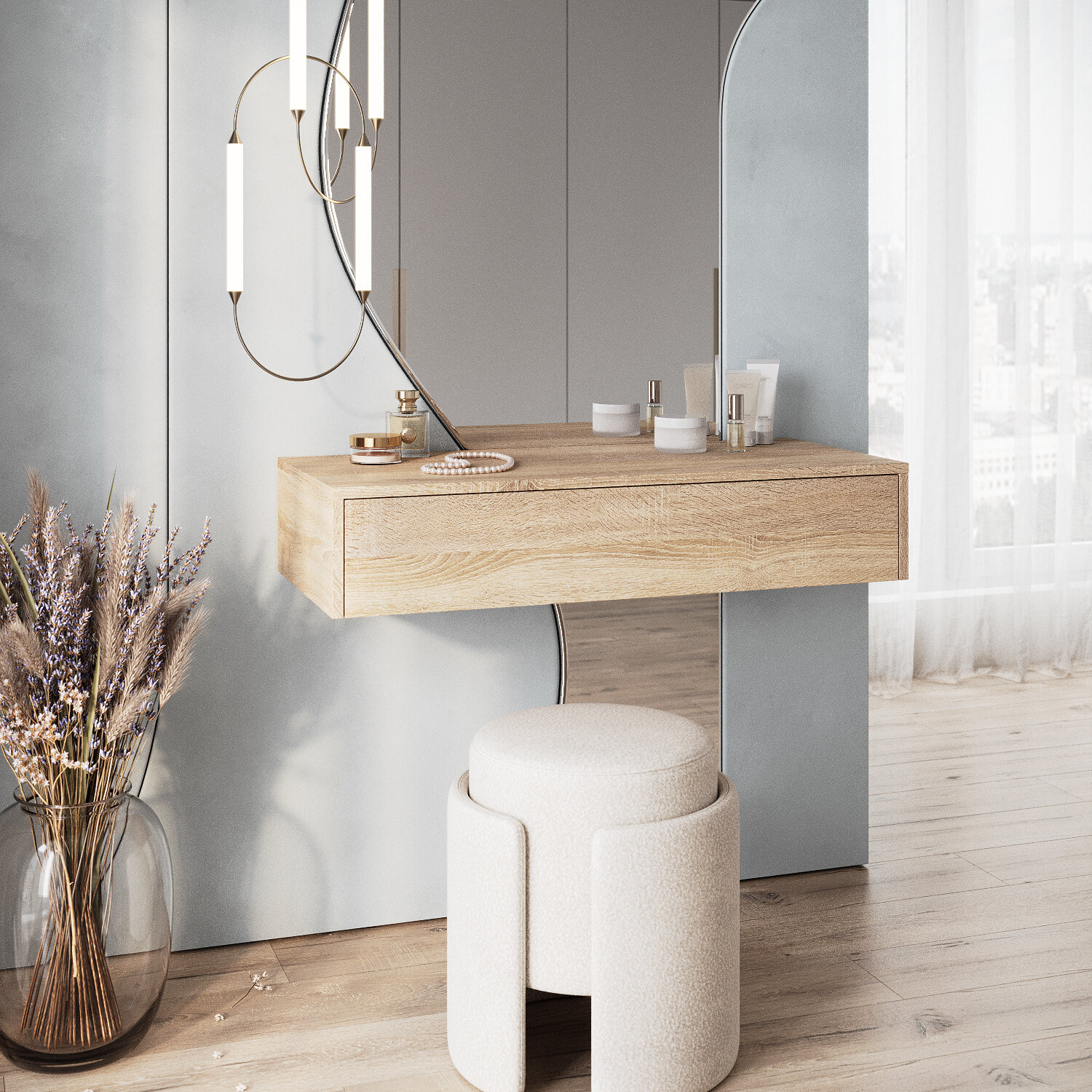 Туалетный столик Неофита – это идеальное решение для тех, кто ценит стиль и удобство в интерьере. Этот косметический столик станет прекрасным дополнением к вашей спальне, гостиной или прихожей, обеспечивая комфорт и порядок в хранении косметики и аксессуаров. Многофункциональность: Туалетный столик может использоваться как макияжный столик, консоль для косметики и даже как письменный стол. Компактный и стильный дизайн: Белый цвет и минималистичный стиль делают его идеальным выбором для любого интерьера, будь то лофт, классический или современный стиль. Подвесная конструкция: Навесной столик легко крепится на стену, что позволяет экономить пространство и делает его удобным для использования в небольших помещениях. Универсальность: Подходит для использования в спальне, гостиной, прихожей или даже в дамском туалете. Компактность: Подвесная конструкция и компактные размеры позволяют установить столик даже в самых маленьких помещениях. Эстетика: Белый цвет и современный дизайн делают его стильным элементом интерьера. Удобство хранения: Выдвижные ящики обеспечивают легкий доступ к необходимым вещам и помогают поддерживать порядок. Изготовлен из качественных материалов, что гарантирует долгий срок службы. Туалетный столик Неофита – это идеальное сочетание функциональности и элегантности. Он станет незаменимым помощником в создании макияжа и уходе за собой, обеспечивая комфорт и порядок в вашем пространстве. Этот макияжный столик прекрасно подойдет как для спальни, так и для гостиной в стиле лофт, добавляя изысканности и уюта вашему дому.