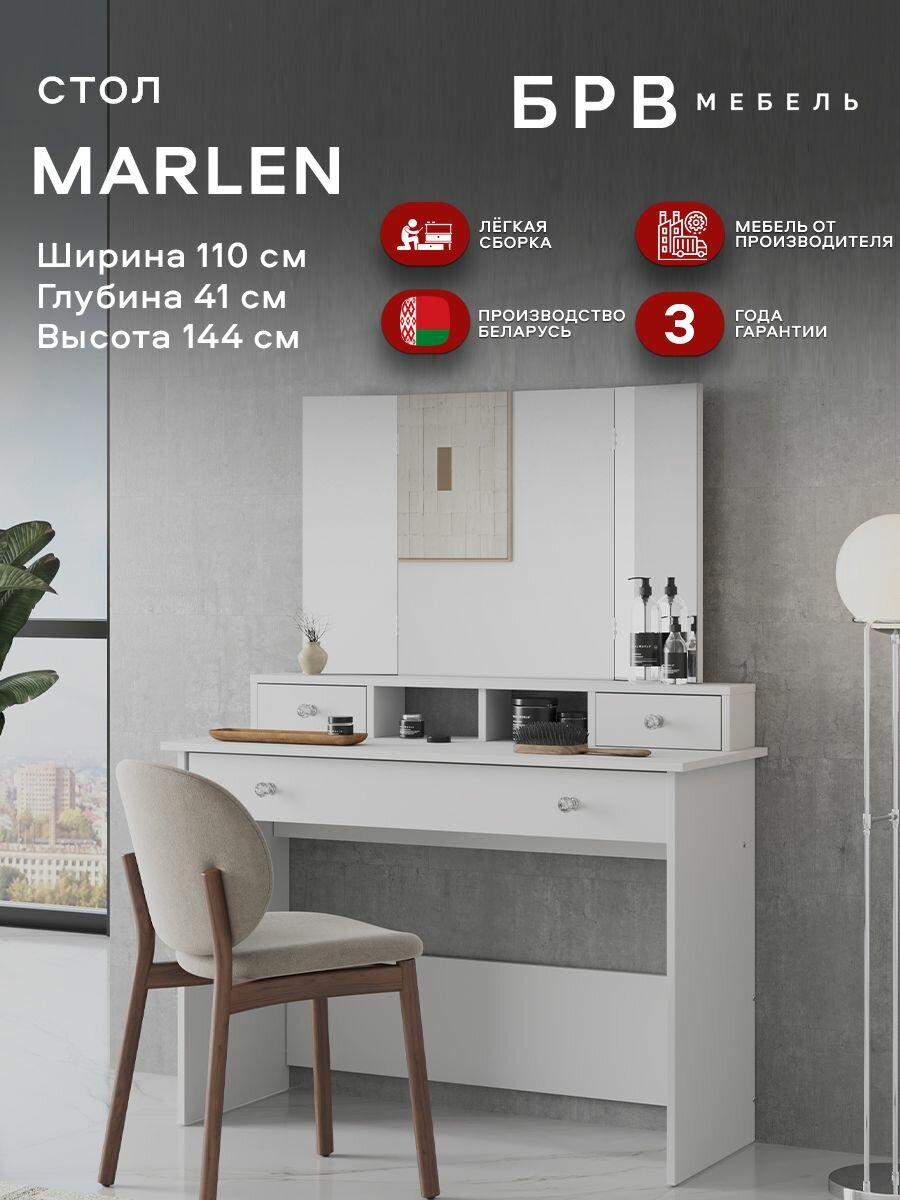 Стол туалетный с зеркалом и ящиками MARLEN TOL3S (Белый классический) Black Red White 1 уп.: сравнение цен, характеристики, фото, актуальное наличие и цены.