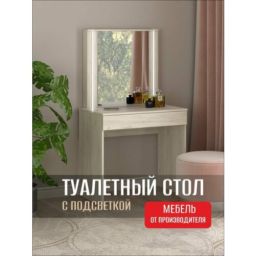 Стол туалетный с зеркалом с подсветкой тип 1, Дуб Крафт Белый, 80х50х143 см: сравнение цен, характеристики, фото, актуальное наличие и цены.