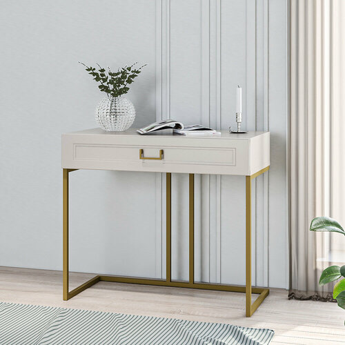 Столик выполнен из современных ЛДСП и МДФ, что обеспечивает долговечность и устойчивость к повреждениям. Удобный выдвижной ящик позволит организовать хранение косметики и аксессуаров, сохраняя ваш столик всегда в порядке. Стильный кашемировый цвет, как в основе из ЛДСП, так и в отделке из МДФ, привносит в интерьер нотку элегантности и гармонии, легко вписываясь в различные дизайнерские решения.