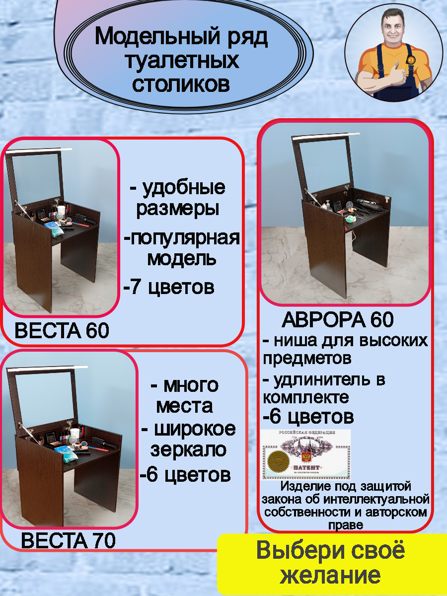 Стол туалетный женский косметический с откидным зеркалом ящиком складной трансформер Веста 70, 70*77*51 (ШхВхГ), mebel-SamSam: сравнение цен, характеристики, фото, актуальное наличие и цены.