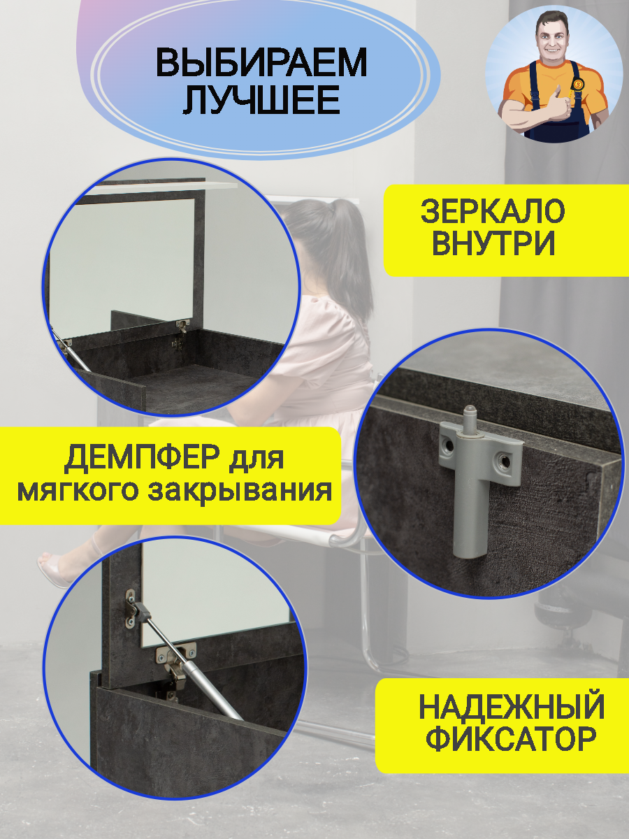 Стол туалетный женский косметический с откидным зеркалом ящиком складной трансформер Веста 70, 70*77*51 (ШхВхГ), mebel-SamSam: сравнение цен, характеристики, фото, актуальное наличие и цены.