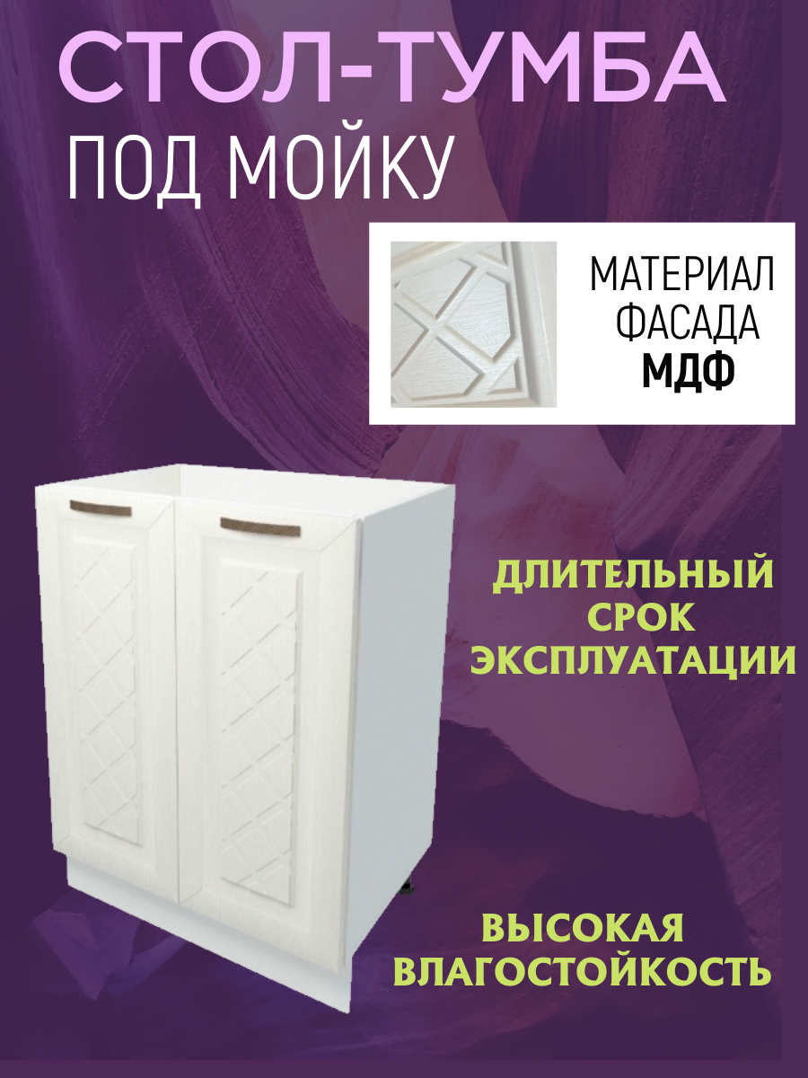 Купить Стол-тумба под мойку Агава, цвет Акация белая, МДФ, ширина 60 см с доставкой по всей России.