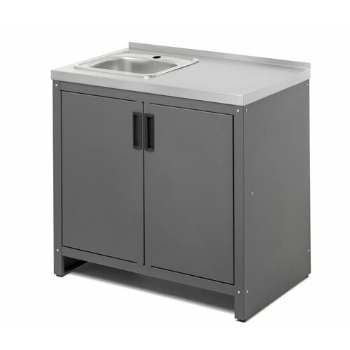 Серый цвет стола-тумбы с мойкой Gratar PATIO T850М придает ему современный и стильный вид, который гармонично впишется в любой интерьер.