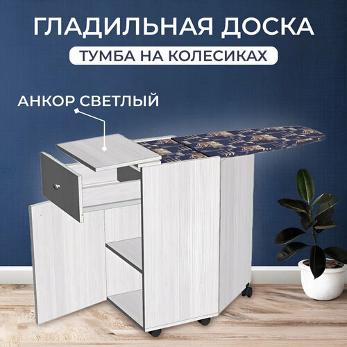 Стол-тумба с гладильной доской на колесах, цвет анкор светлый, 41х42х84 см: сравнение цен, характеристики, фото, актуальное наличие и цены.