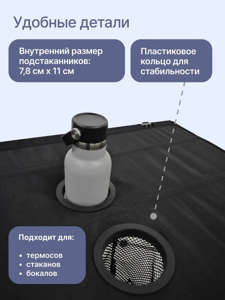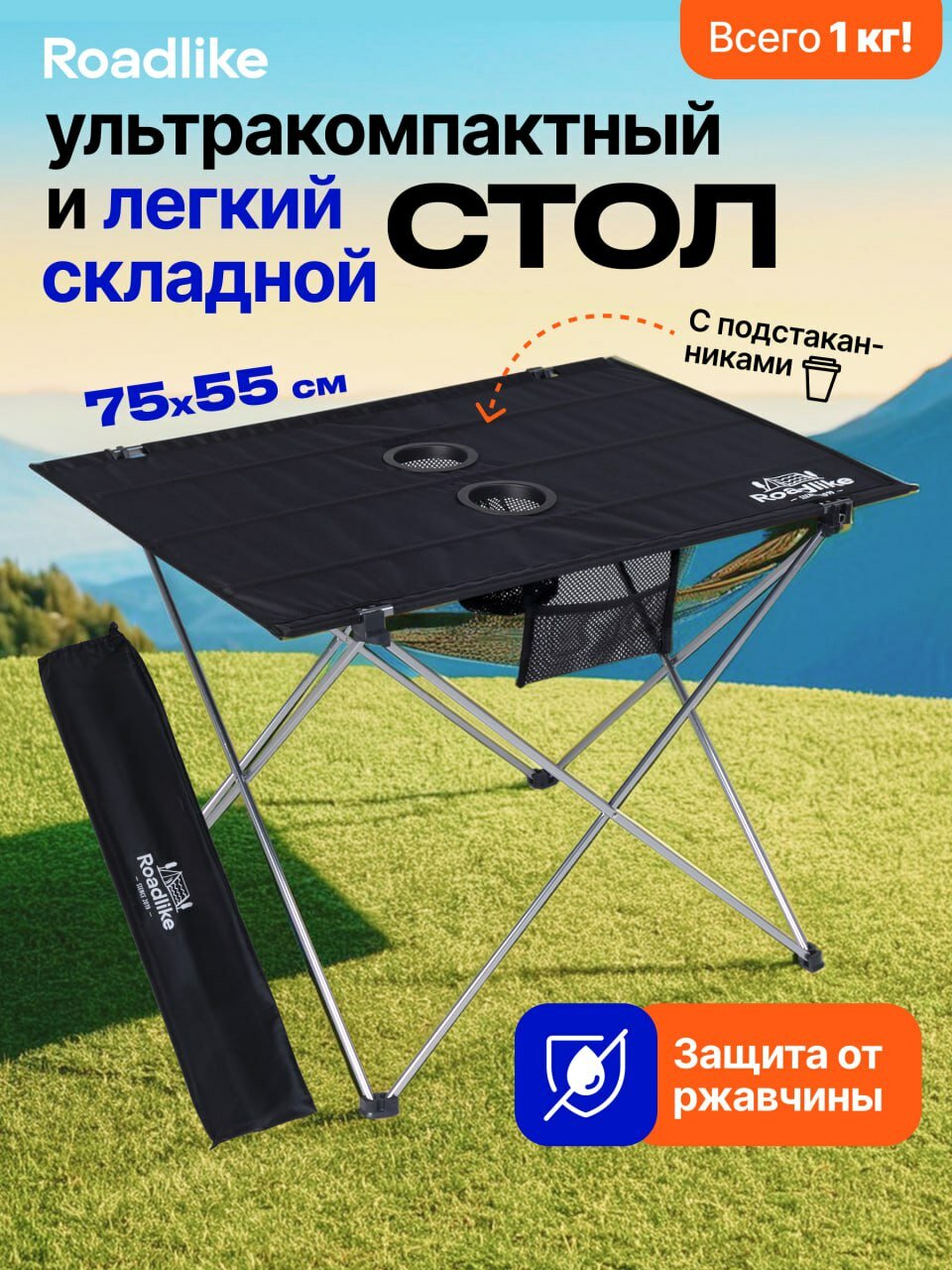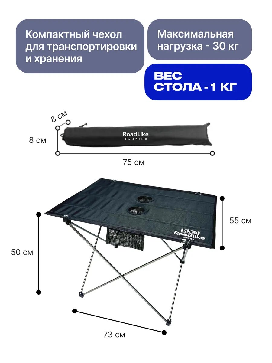 Хотите насладиться отдыхом на природе, а при этом не жертвовать комфортом? Тогда стол туристический Roadlike Air размер 74*54*52 см - идеальный выбор для вас! Этот стол складной имеет компактный размер в сложенном виде всего 75х cм и весит всего 1 килограмм, поэтому его легко можно взять с собой в любую поездку. Новая модель стола теперь осанешенаподстаканниками. Стол для пикника Roadlike Air изготовлен из высокопрочной ткани Oxford 600D, которая быстро сохнет и не впитывает влагу. Каркас стола туристического выполнен из высокопрочного алюминия с антикоррозионным покрытием, что обеспечивает его устойчивость и надежность. Этот стол походный имеет размер 74*54*52 см, что позволяет удобно разместить на нем все необходимые вещи. Благодаря удобному карману для мелочей, вы всегда будете знать, где находятся самые важные вещи. Стол туристический складной Roadlike Air - отличное решение для отдыха в саду или на даче. Вы можете забрать его с собой на пикник или использовать в походе, кемпинге и выездах на природу. Кроме того, компактный размер в сложенном виде и удобный чехол для хранения позволяют вам легко брать стол туристический с собой в любое путешествие. Как только вы найдете подходящее место для отдыха, с этим столом складным вам не придется искать удобное место для еды и прочих вещей. Итак, если вы ищете стол туристический, который будет удобен в использовании и компактен в переноске, то Roadlike Air- ваш выбор! Не упустите возможность насладиться комфортом на природе с этим надежным и удобным столом туристическим.