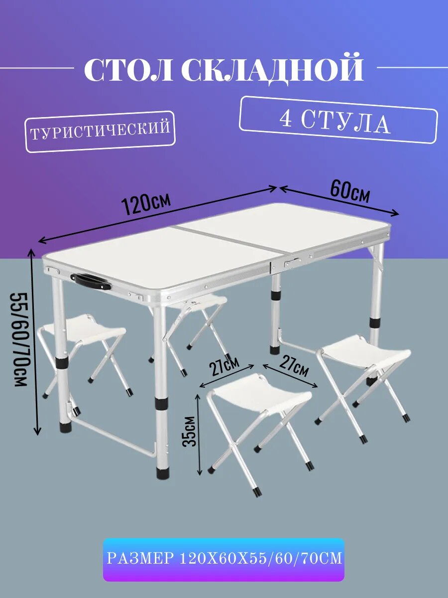 Купить Стол туристический складной 120Х60Х70СМ+4 стула с доставкой по всей России. Стол туристический складной 120Х60Х70СМ+4 стула: сравнение цен, характеристики, фото, актуальное наличие и цены.