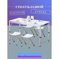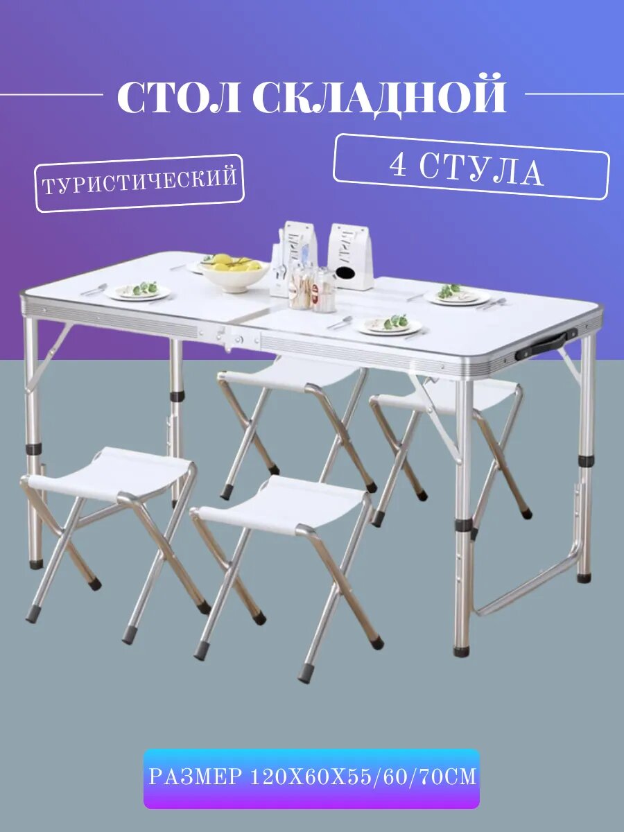Стол туристический складной 120Х60Х70СМ+4 стула: сравнение цен, характеристики, фото, актуальное наличие и цены.