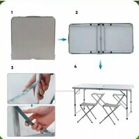 Размеры: Высота - (70,60,54) см Длина-120 см Ширина-60 см Размер стула ВхШхГ 35х22х26 см Складной стол туристический - идеальный выбор для всех, кто любит активный отдых! Наш стол легко складывается и разворачивается, что делает его идеальным компаньоном для поездок на природу, пикников, кемпинга или даже для использования в саду.