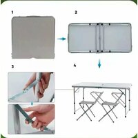 Размеры: Высота - (70,60,54) см Длина-120 см Ширина-60 см Размер стула ВхШхГ 35х22х26 см Складной стол туристический - идеальный выбор для всех, кто любит активный отдых! Наш стол легко складывается и разворачивается, что делает его идеальным компаньоном для поездок на природу, пикников, кемпинга или даже для использования в саду.