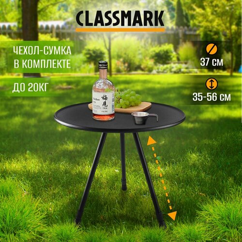 Купить Стол туристический складной и раскладной Classmark для рыбалки и сада, похода и кемпинга, чехол сумка в комплекте, нагрузка до 20 кг, диаметр 37 см, изменяемая высота 35-56 см, черный с доставкой по всей России.
