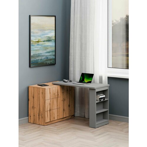 Купить Стол угловой письменный трансформер 105х50х75 см, Дуб Вотан + серый. Столешница 25 мм. с доставкой по всей России. Стол угловой письменный трансформер 105х50х75 см, Дуб Вотан + серый. Столешница 25 мм.: сравнение цен, характеристики, фото, актуальное наличие и цены.