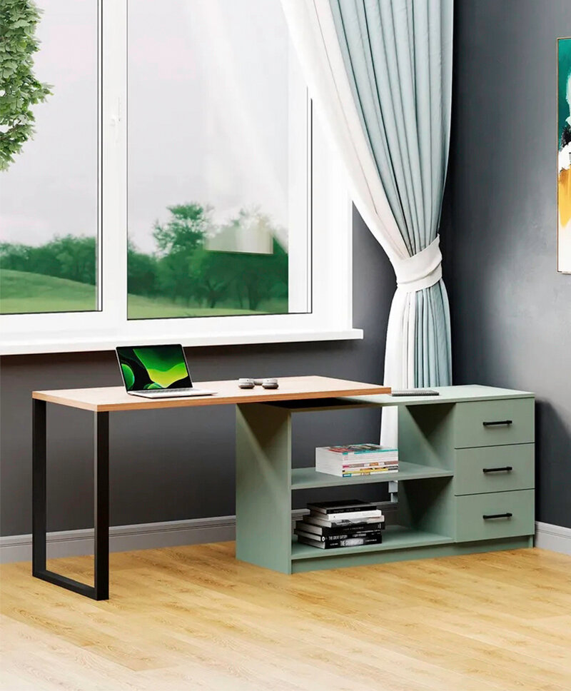 Стол угловой письменный трансформер 135х132х75 см, Дуб Вотан + Зеленый Эвкалипт. Столешница 25 мм: сравнение цен, характеристики, фото, актуальное наличие и цены.