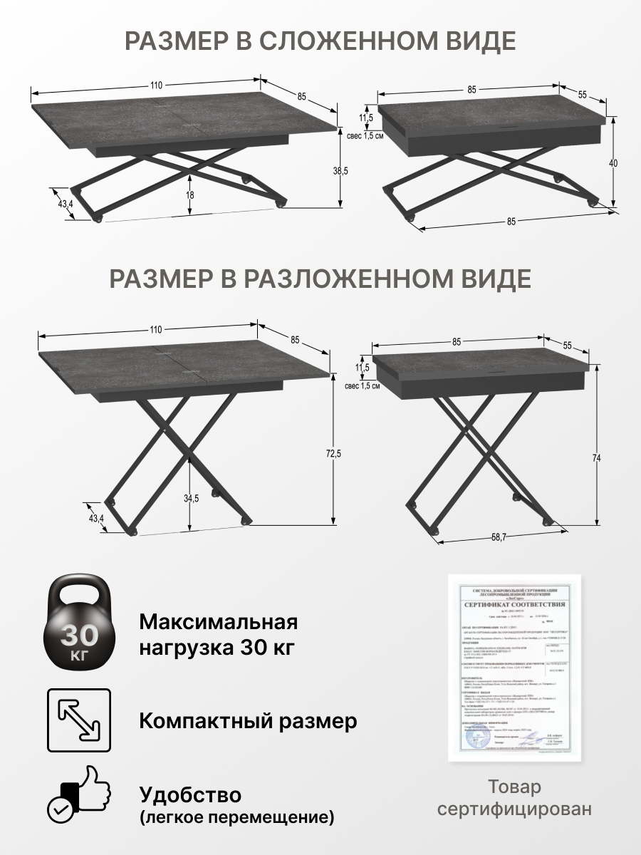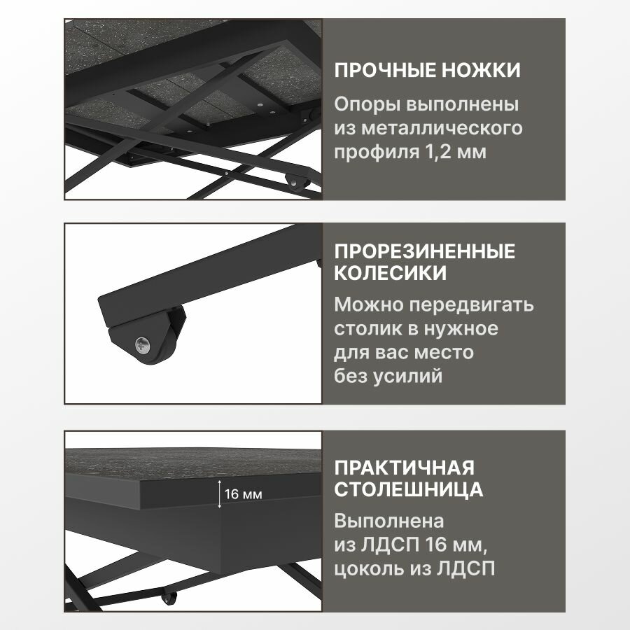 Стол универсальный трансформируемый Калифорния андрэ Loft ЛДСП Терраццо/Черный: сравнение цен, характеристики, фото, актуальное наличие и цены.
