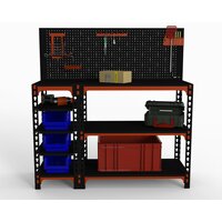 Стол-верстак Metalex 950х1800х600 (с бок. полками, перфопанелью и комп. аксессуаров) оранжево-чёрный: сравнение цен, характеристики, фото, актуальное наличие и цены.