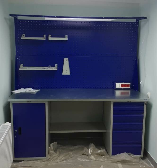 Стол верстак слесарный металлический с 2 тумбами с дверью и с 5 ящиками, с экраном, 1800 мм, практик PROFI WT180. WD1/WD5.010: сравнение цен, характеристики, фото, актуальное наличие и цены.