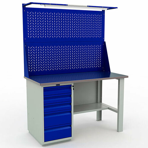 Стол верстак слесарный металлический с тумбой с 5 ящиками, с 2 экранами и светом, 1400 мм, практик PROFI WT140. WD5/F1.021: сравнение цен, характеристики, фото, актуальное наличие и цены.