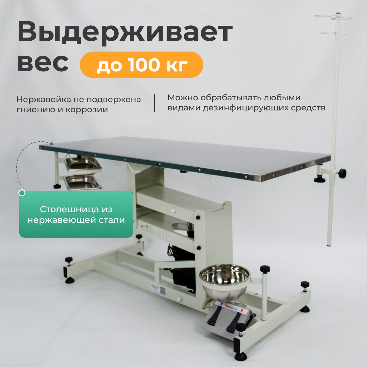 Стол ветеринарный 130х60 см, электрический, нержавеющая сталь с регулировкой высоты 60 — 100 см: сравнение цен, характеристики, фото, актуальное наличие и цены.