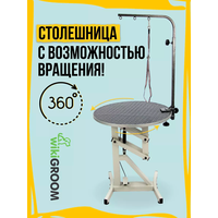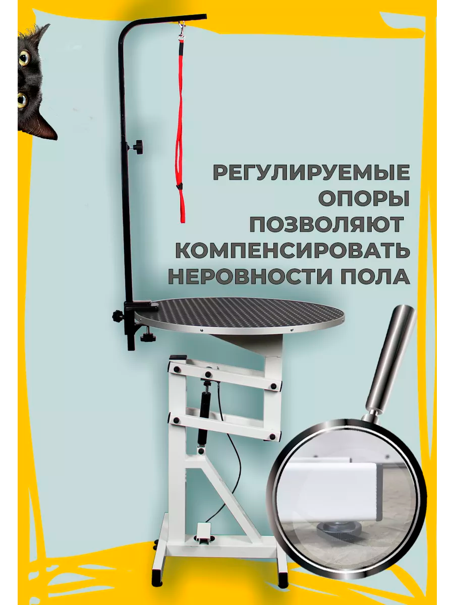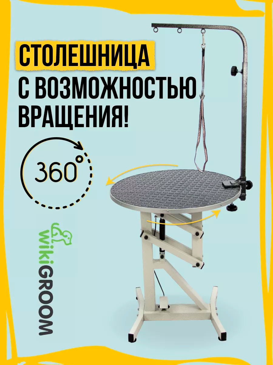 Стол для груминга wikiGROOM пневматический с алюминиевой окантовкой и с круглой столешницей диаметром 60 см идеально подойдет для стрижки собак малых и средних пород. Позволяет качественно выполнить груминг собак, груминг кошек и других животных. Стол регулируемый по высоте в диапазоне 68-94 см. В комплект со столом входит металлический кронштейн и петля-ринговка для груминга. В комплект входит металлический, профессиональный кронштейн для груминга и петля-ринговка. Подстолье выполнено из толстого металла с использованием качественной фурнитуры, поэтому конструкция прочная и не шатается даже под неспокойным клиентом. Пневматический подъемный механизм. Ножка для стола регулируемая и может подстраиваться под любые неровности пола. Материал столешницы - ЛДСП, стойкий к воздействию влаги и грязи. Покрытие на стол мы установили прочное и не скользящее. Когти ваших хвостатых клиентов не смогут его повредить!