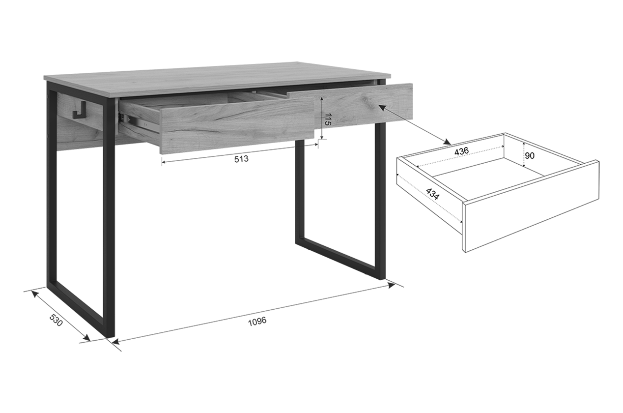 Стол «Юниор», с ящиками, ЛДСП/металл, белое дерево/черный муар (1100х580х750)