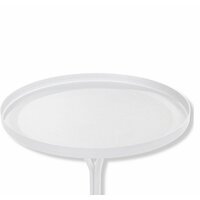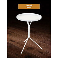 Основой столика является металлический каркас, окрашенный порошковой краской. Это обеспечивает устойчивость к механическому воздействию и продлевает срок службы изделия. Столешница также выполнена из металла и окрашена в белый муар. Диаметр столешницы составляет 350 мм, что позволяет разместить на ней различные предметы.