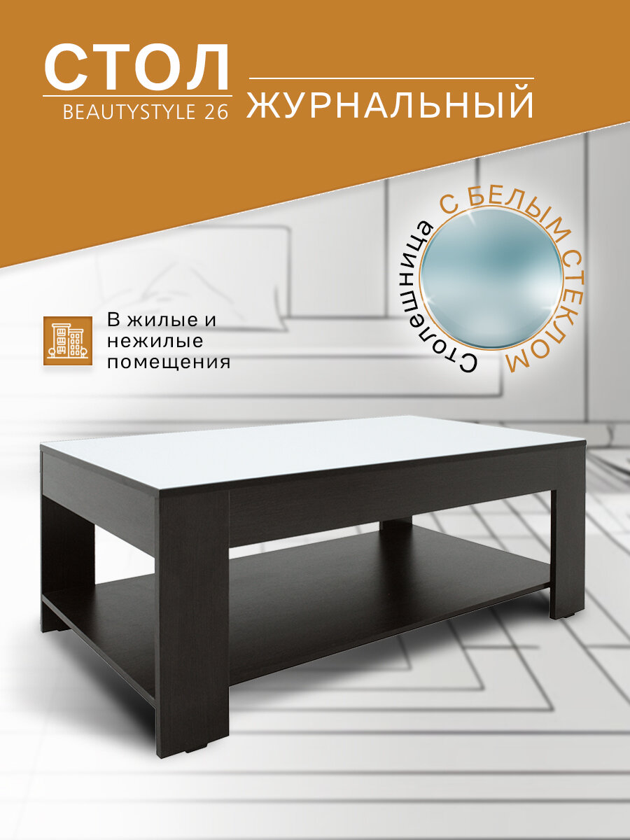 Стол журнальный Beauty Style 26 вполне может выполнять функцию рабочего стола современного творческого человека. При его внушительных размерах 60*110см только высота в 46см его отличает от полноценного письменного стола. Кроме большой рабочей поверхности, у стола есть удобная очень вместительная полка для книг, журналов, гаджетов, прочих мелочей. На таком столе можно легко сервировать завтрак, или легкий ужин. Этот стол будет уместен в гостиной, оформленной в современном строгом стиле.___