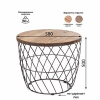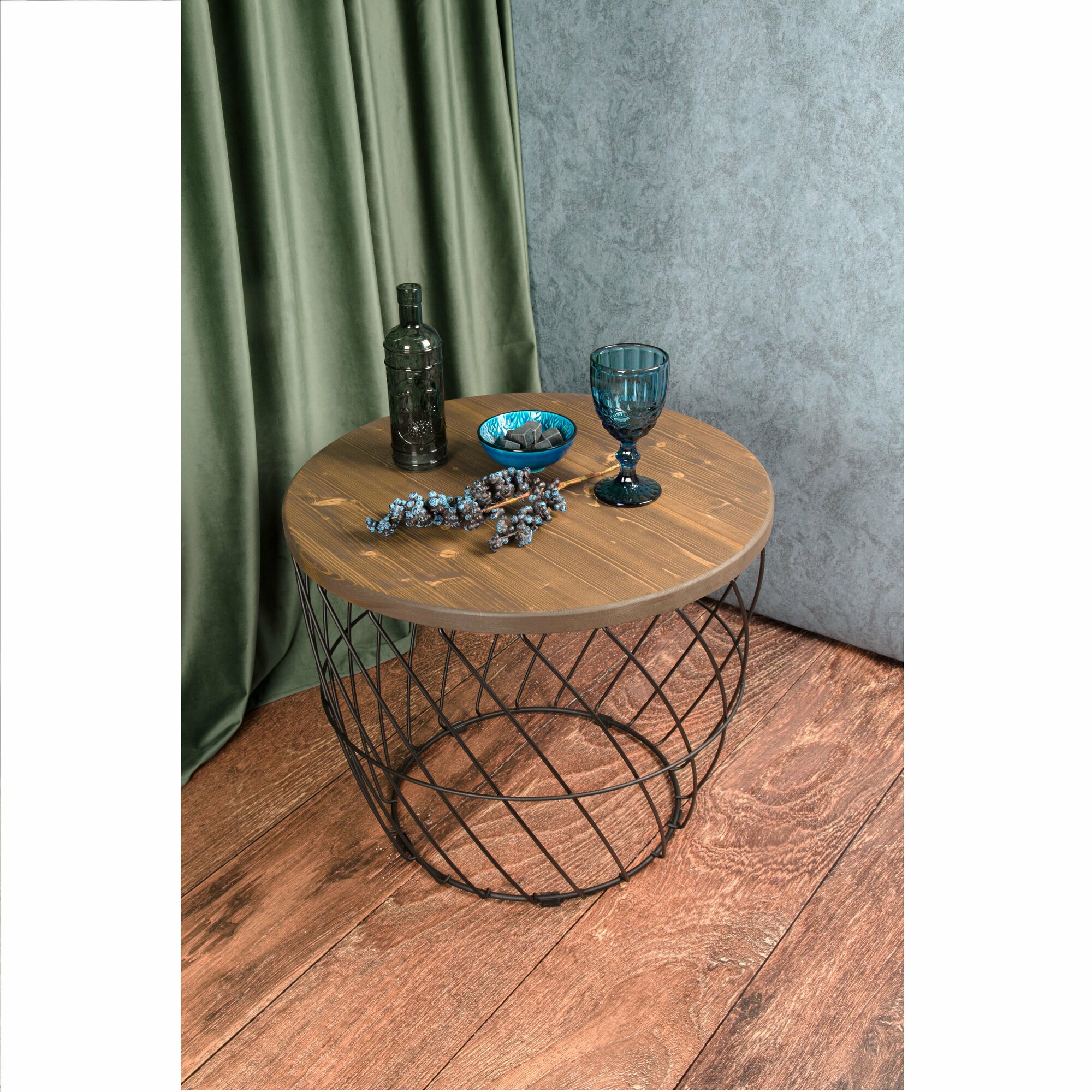 Журнальный стол с металлическим каркасом и деревянной столешницей не требует сборки, надёжно упакован в плёнку и картонный короб, обладает пластиковыми ножками и не царапает пол. Маленький круглый кофейный столик из массива дерева - это необычное дизайнерское решение для декора и украшения гистинной зоны дома, а на даче - для кабинета, лоджии или террасы. Низкий декоративный чайный столик loft органично впишется в современный домашний интерьер или скандинавский дизайн, а также подойдёт для бара и кафе. Мини журнальный столик выполнен из натуральных ЭКО материалов: основания из металла с покрытием чёрного цвета и коричневой столешницы из массива сосны. Интерьерный журнальный стол - не просто предмет интерьера, дизайн которого гармонично сочетается с мебелью в стиле лофт, это элемент системы хранения вещей на балконе, в прихожей или в жилых комнатах дома: спальне, зале и гостиной, а также интересная альтернатива винным столикам и полкам для вина, и просто красивая вещь.