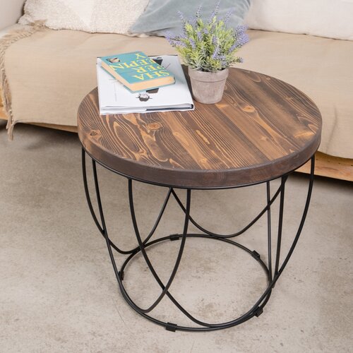 Купить Стол журнальный ilwi MBL-W-TL-W-1-W/1/2 круглый металлический с деревянной столешницей в стиле лофт с доставкой по всей России.