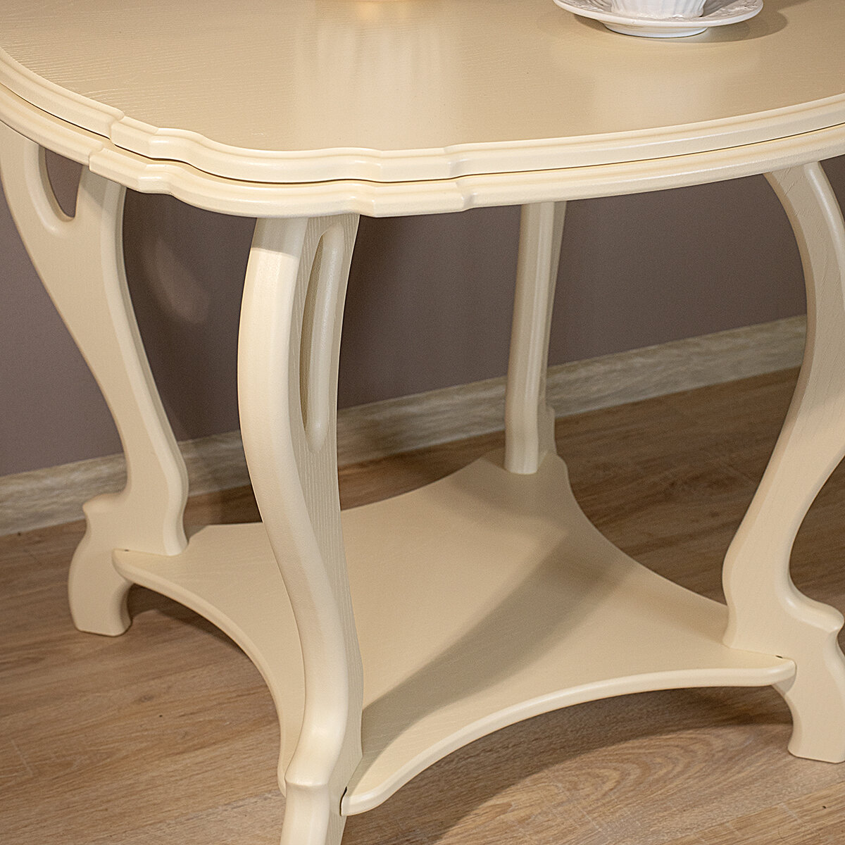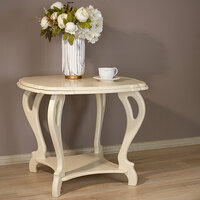 Классический журнальный столик из дерева имеет приятный дизайн. Модель украшают сдержанные декоративные элементы. Её ножки изящно изогнуты, а столешница имеет рельефную кромку. Предмет мебели станет функциональной частью традиционного интерьера дома, квартиры, дачи или офиса. Столик может служить, как подставка под интерьерный декор, букет цветов. На дополнительной полке много места для книг и мелочей. Малогабаритный, низкий деревянный стол удобно использовать, как приставной в прикроватной или придиванной зоне спальни. Комплектуйте модель с диваном, креслом, стульями чтобы создать уголок для отдыха взрослых и детей в гостиной комнате. Большая настольная полочка отлично подойдёт для сервировки завтрака во время просмотра телевизора, для работы за ноутбуком. Столик будет хорошо смотреться в просторной прихожей рядом с зеркалом. Маленькие аксессуары всегда будут под рукой в надёжном месте. В офисной зоне отдыха модель можно использовать, как сервировочный, кофейный, чайный или книжный столик. Летом вместительный стол можно разместить на садовой или дачной террасе.